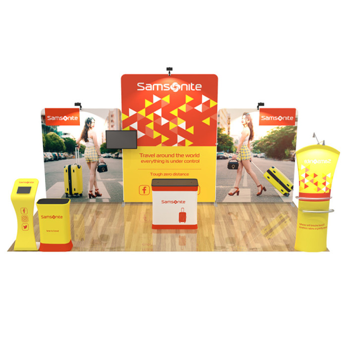 Are you interested in creating an exhibit booth that will be the #1 eye-catcher at your next event? Attract attention and build brand awareness with our custom 10x20ft booth designs. Our aluminum-framed booths are manufactured to be easily transported and dismantled, offering an efficient option for advertising at any event.