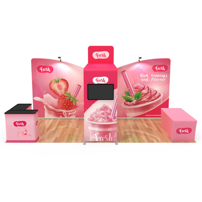 Are you interested in creating an exhibit booth that will be the #1 eye-catcher at your next event? Attract attention and build brand awareness with our custom 10x20ft booth designs. Our aluminum-framed booths are manufactured to be easily transported and dismantled, offering an efficient option for advertising at any event.