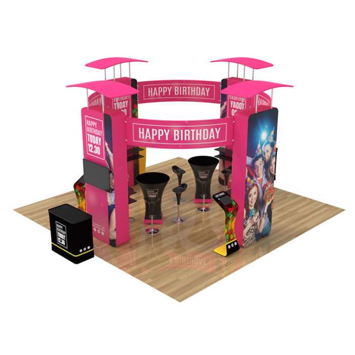 To better express your business image, we utilize 100% polyester straight grain fabric, which is washable, wrinkle free, inflaming retarding and eco-friendly. Furthermore, the fabric graphic extends to the edge with end cap, and this should make your display look perfect.