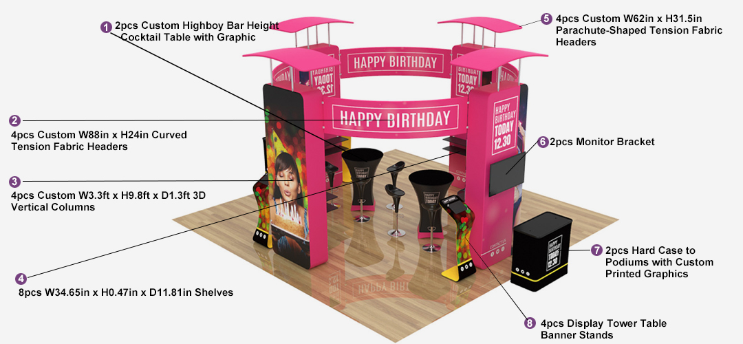 - 4pcs Custom W88in x H24in Curved Tension Fabric Headers